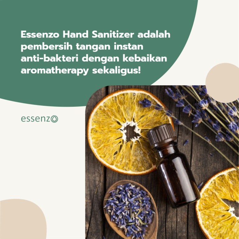 Menjaga Kebersihan Tangan Anti-Kuman dan Bakteri dengan Essenzo Hand Sanitizer, merupakan pembersih tangan yang aman, diformulasikan dengan ethanol 96% dan 100% pure essential oil 100% yang membentuk kandungan alkohol final sebesar 70% sehingga bermanfaat untuk membunuh kuman dan bakteri berbahaya