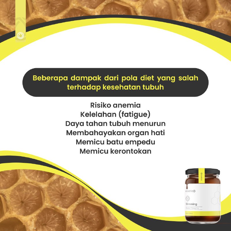 Artikel Sumber: Cara Turun berat badan dengan Essenzo Slimming Honey Keunggulan Madu Slimming bekhasiat untuk Menurunkan berat badan dan memperlancar sistem pencernaan. Membantu menurunkan kadar kolesterol dengan menurunkan kadar LDL dan menaikkan kadar HDL dalam darah serta memperlancar peredaran darah. Kandungan antioksidan yang mampu menangkal radikal bebas dan menjaga daya tahan tubuh. Sebagai antiinflamasi “PROMO…