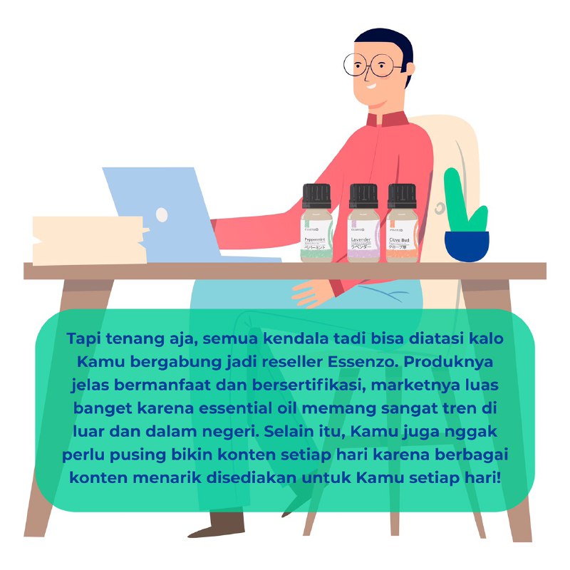 Oleh karena itu, Essenzo sudah menyediakan ribuan konten & materi iklan yang SIAP PAKAI. Jadi Kamu sudah disiapkan “alat perang” untuk berjualan. Kamu tidak perlu repot-repot bikin konten, harus bayar 5-10 Juta / bulan, dengan menjadi reseller Essenzo, Kamu hanya tinggal belajar, praktek, lalu COPY PASTE saja untuk mendapatkan keuntungan. Asyik sekali bukan?